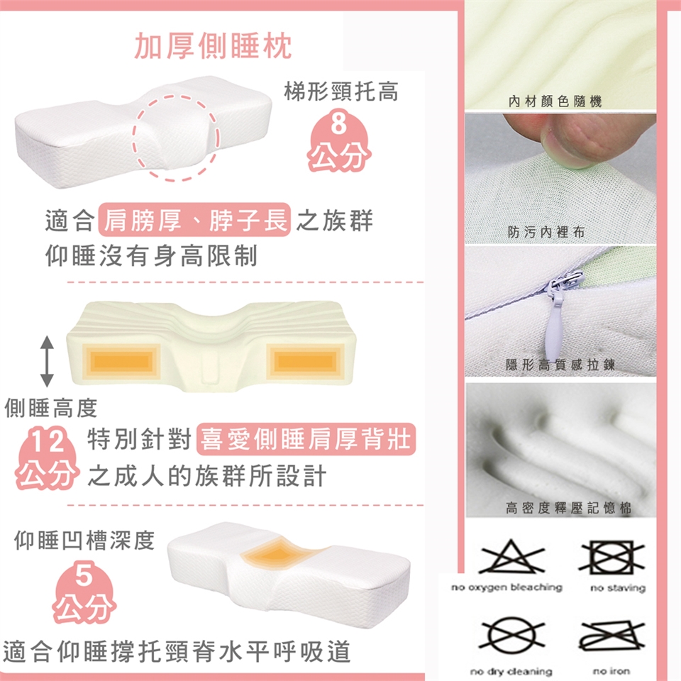 本產品【米夢家居】精選灌模記憶枕,適合肩厚背壯,尤其是習慣側睡的叔媽嬸伯!