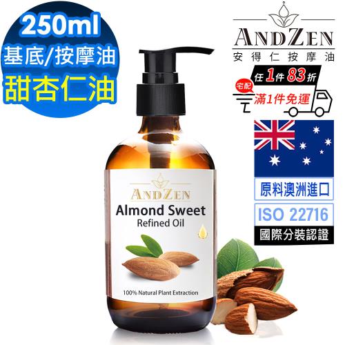【ANDZEN 安得仁】甜杏仁油250ml-玻璃瓶裝(按摩油保濕油基礎油基底油)