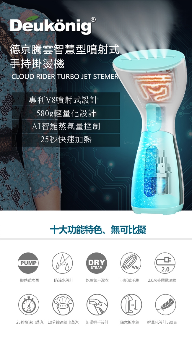 【Deukonig 德京】騰雲智慧型噴射式多功能手持掛燙機粉蝶紫限定款
