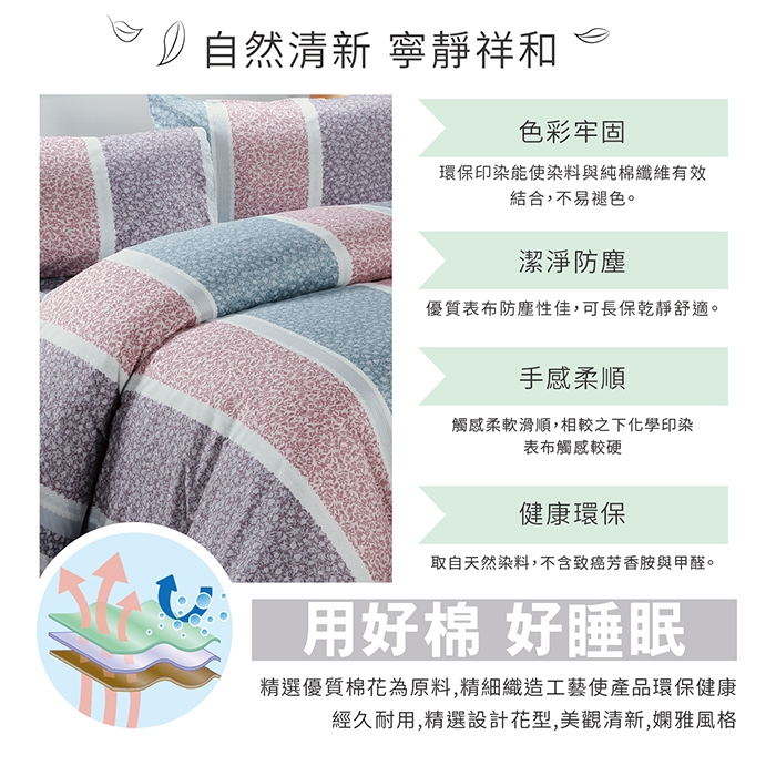 ★精心挑選設計的花色,色澤穩定經久耐洗品味與質感兼具環保健康的寢具