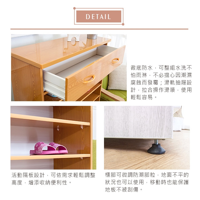 收納抽屜採用滑軌設計,拉合操作滑順,使用輕鬆容易。