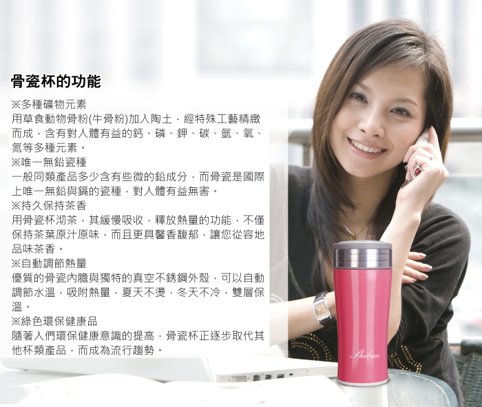 - 內膽採用硬白瓷(骨瓷)材質,盛裝咖啡、茶、檸檬水、中藥、濃茶、拿鐵、牛奶都可裝,不會腐蝕、沒有金屬味,異味不殘留
