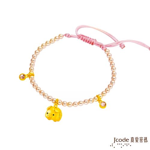 Jcode真愛密碼 撲滿小豬黃金/水晶珍珠手鍊