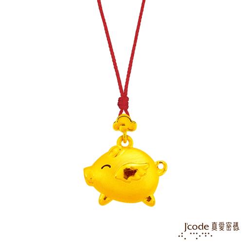 Jcode真愛密碼 飛天豬黃金墜子-立體硬金款 送項鍊
