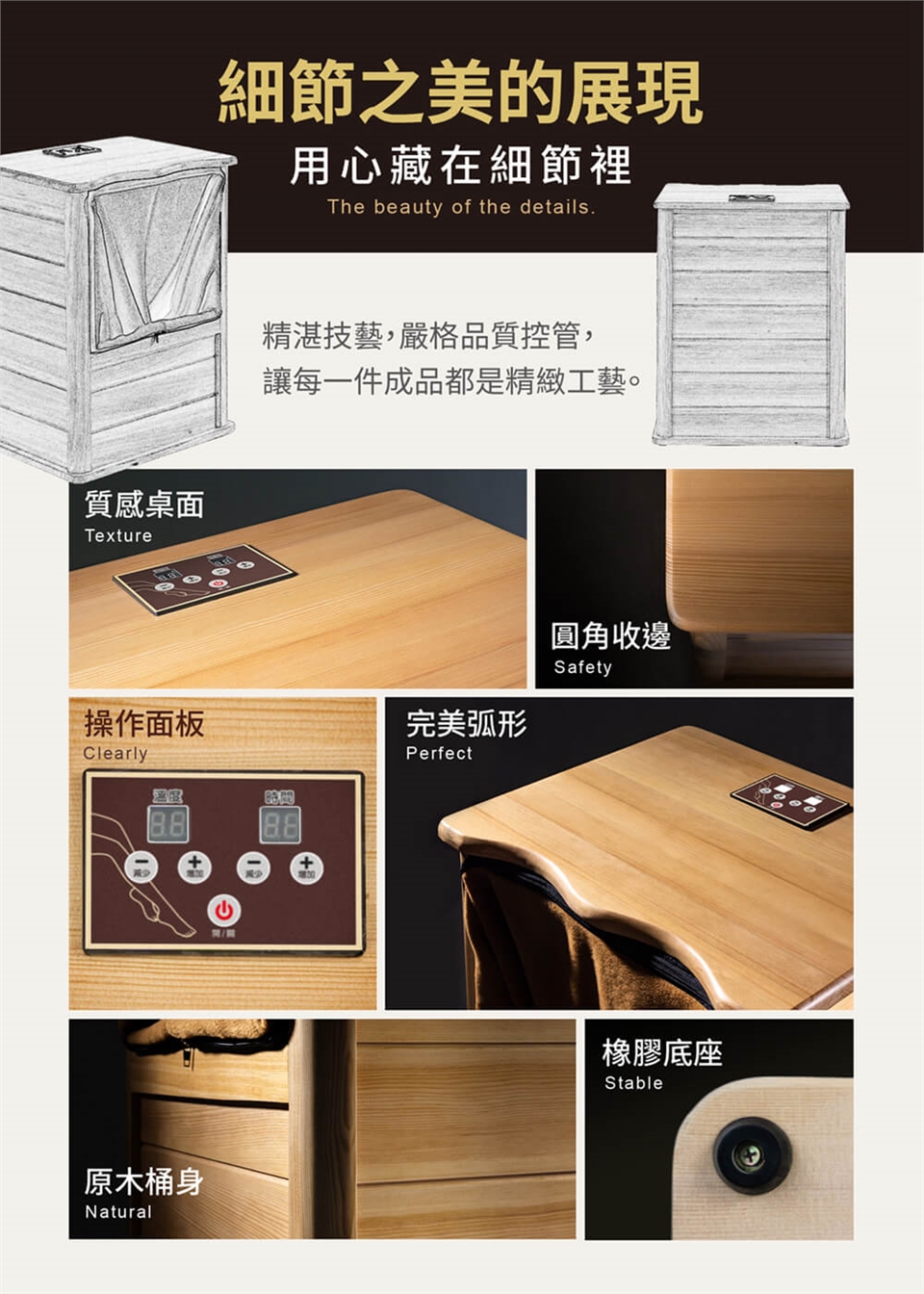 主要材質:加拿大鐵杉木+遠紅外線碳晶板