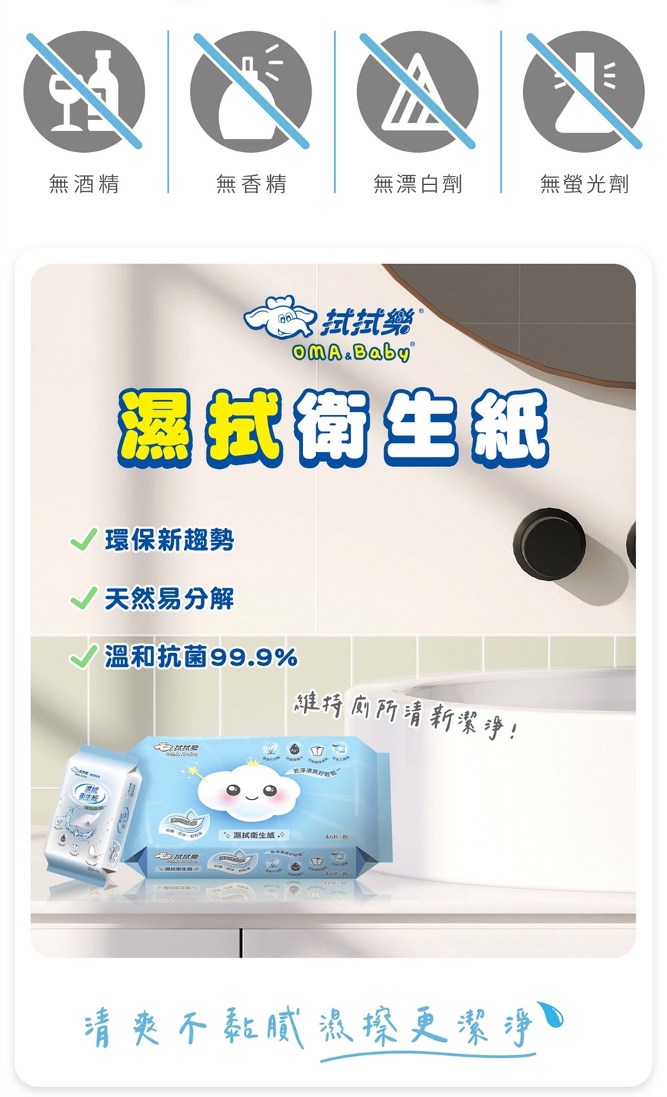 ◎ 超越濕紙巾的衛生紙,濕潤水感好擦拭。
