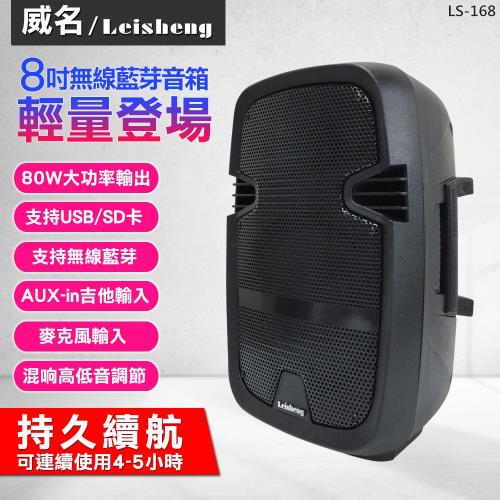 威名Leisheng 8吋便攜型藍芽音箱(LS-168) 80W大功率 混嚮調節 吉他輸入