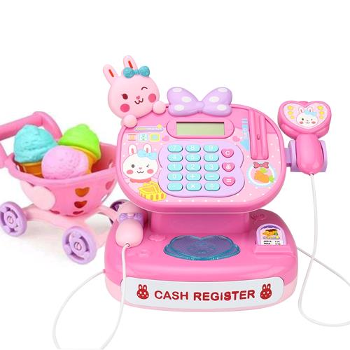 【孩子國】粉粉小兔聲光超市收銀機豪華組/家家酒玩具 (附可擴音麥克風及購物車)