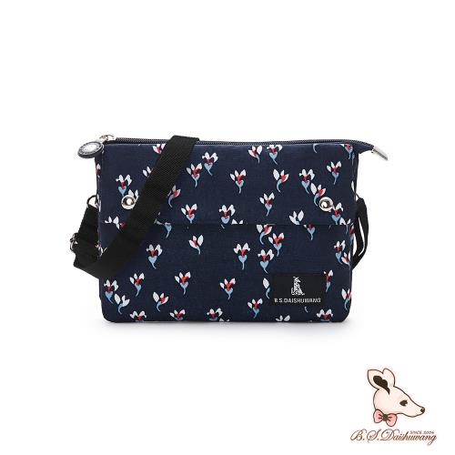 B.S.D.S冰山袋鼠 - 楓糖瑪芝 - 橫式三層斜背小包 - 花卉黑【003KF】