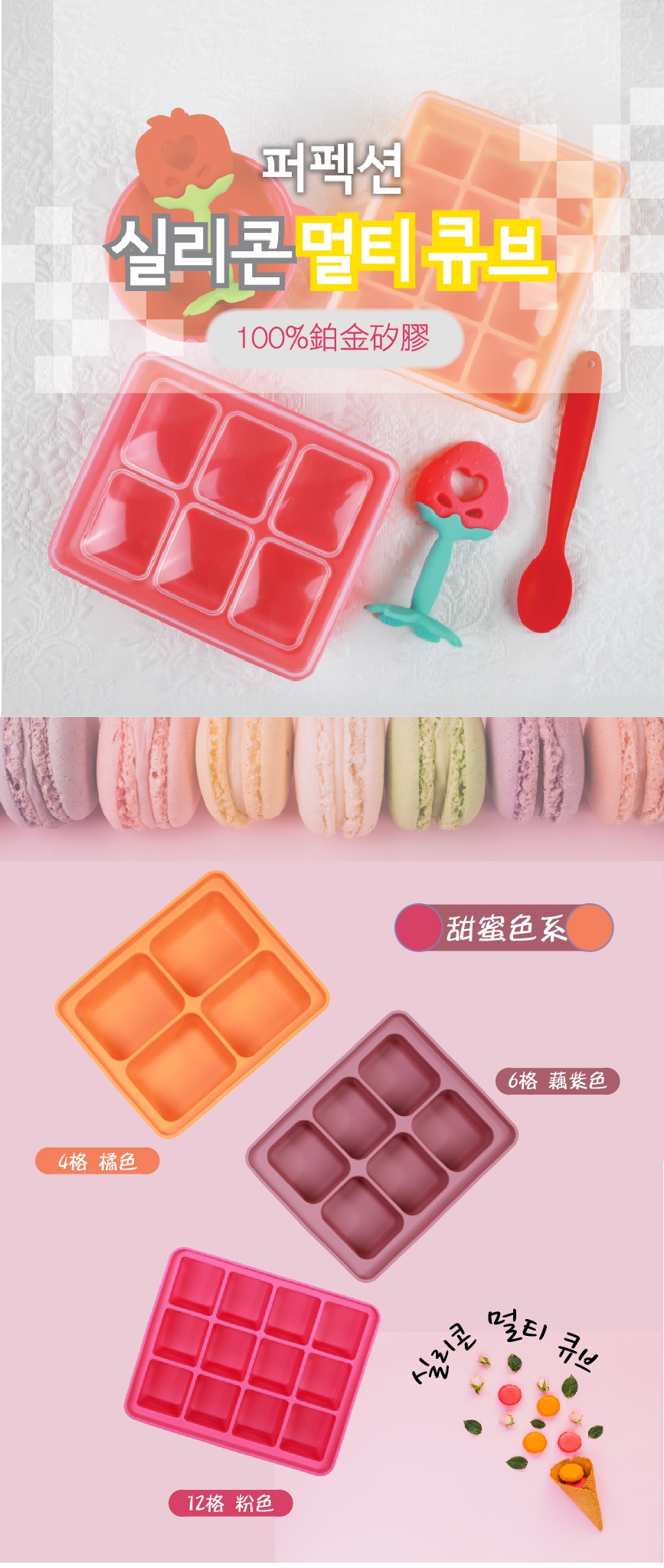 2.根據寶寶成長期食量挑選適合矽膠製冰盒格數來盛裝嬰兒副食品磚。
