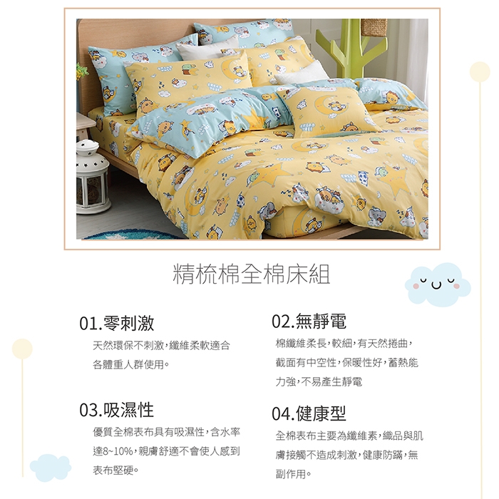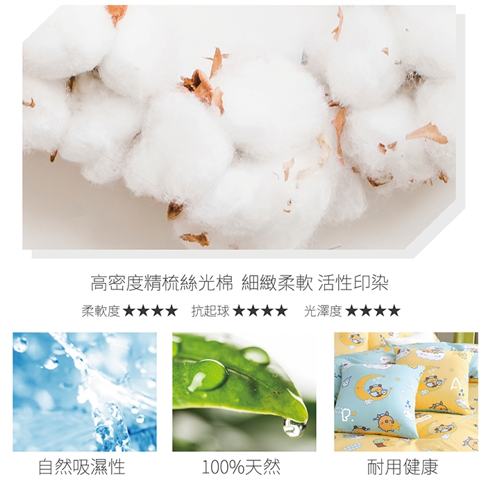 ★台灣製精梳棉床罩組採用100%絲光精梳棉布,經多重絲光及壓光後處理製成。