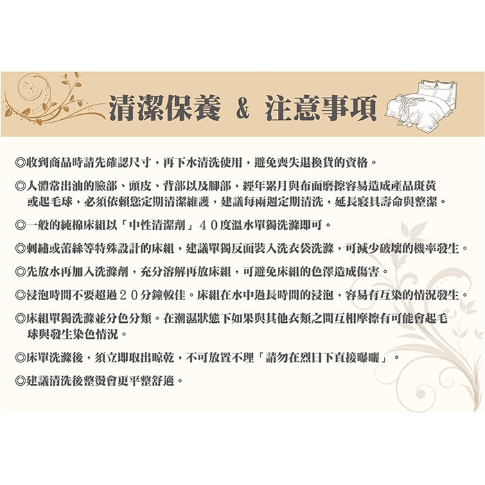 ★精心挑選設計的花色,色澤穩定經久耐洗品味與質感兼具環保健康的寢具