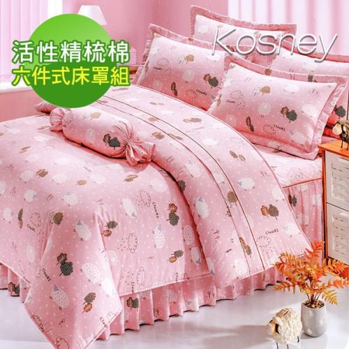 KOSNEY 愛戀小羊 頂級雙人活性精梳棉六件式床罩組台灣製