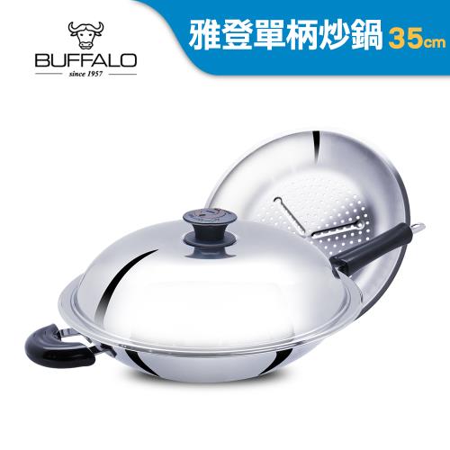 Buffalo牛頭牌 新雅登單柄炒鍋35cm附蒸層(304不鏽鋼 中華炒鍋 炒菜鍋)