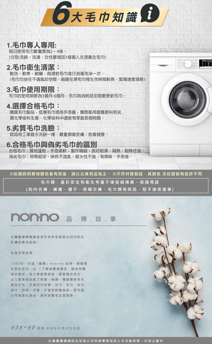 一、新毛巾使用前先洗水,去除表片之化學藥劑