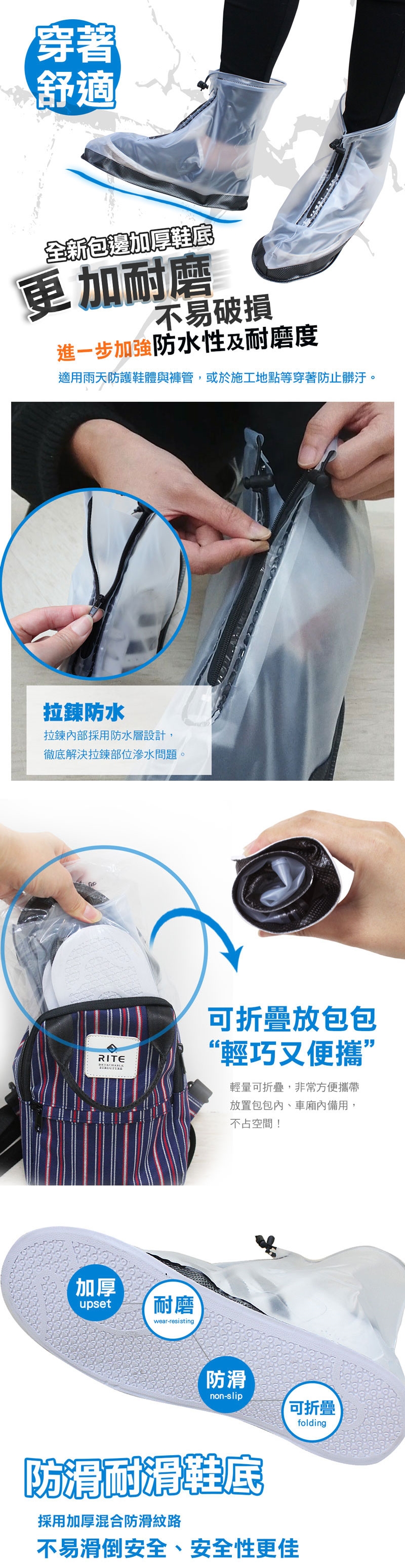 別怕,快在車廂準備一雙中筒PVC輕巧特防滑防雨鞋套!以備不時之需!