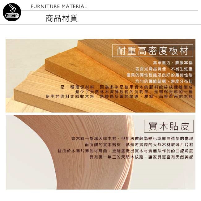 曲木板採用耐重高密度板材搭配細膩實木貼皮,耐用不易變形!