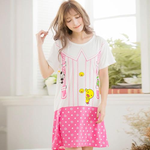 lingling日系 動物印圖牛奶絲短袖連身裙睡衣(全尺碼)