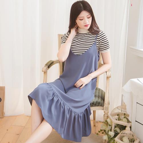 大尺碼-V領細肩吊帶荷葉下擺洋裝(共二色)lingling中大尺碼
