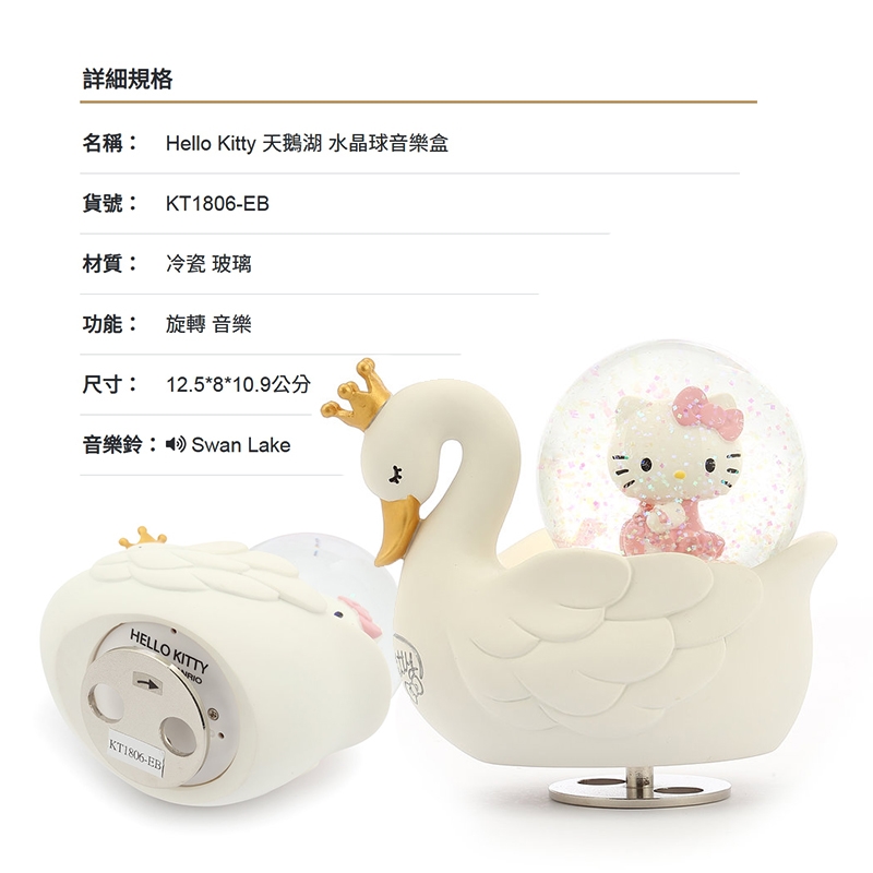 名稱:Hello Kitty天鵝湖 水晶球音樂鈴