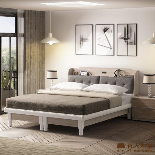 【直人木業】ERIC原切木貓抓皮靠墊6尺雙人加大實木腳座床組(腳14公分高)