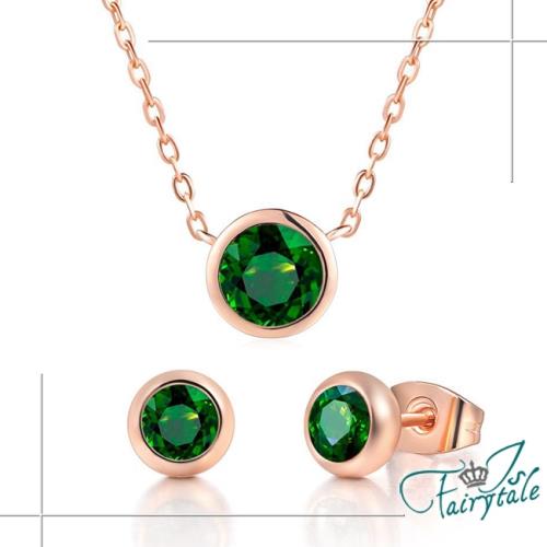 【伊飾童話】許願之星*圓鋯石玫瑰金耳環項鍊組/綠