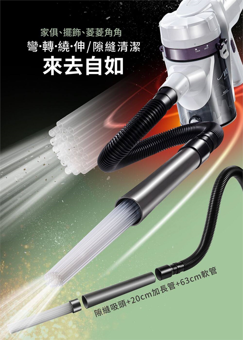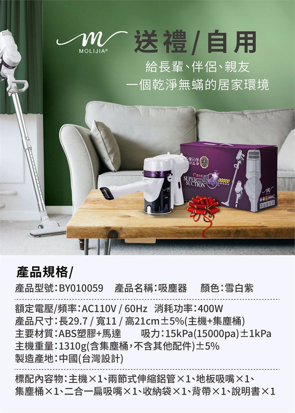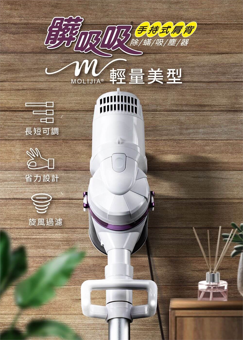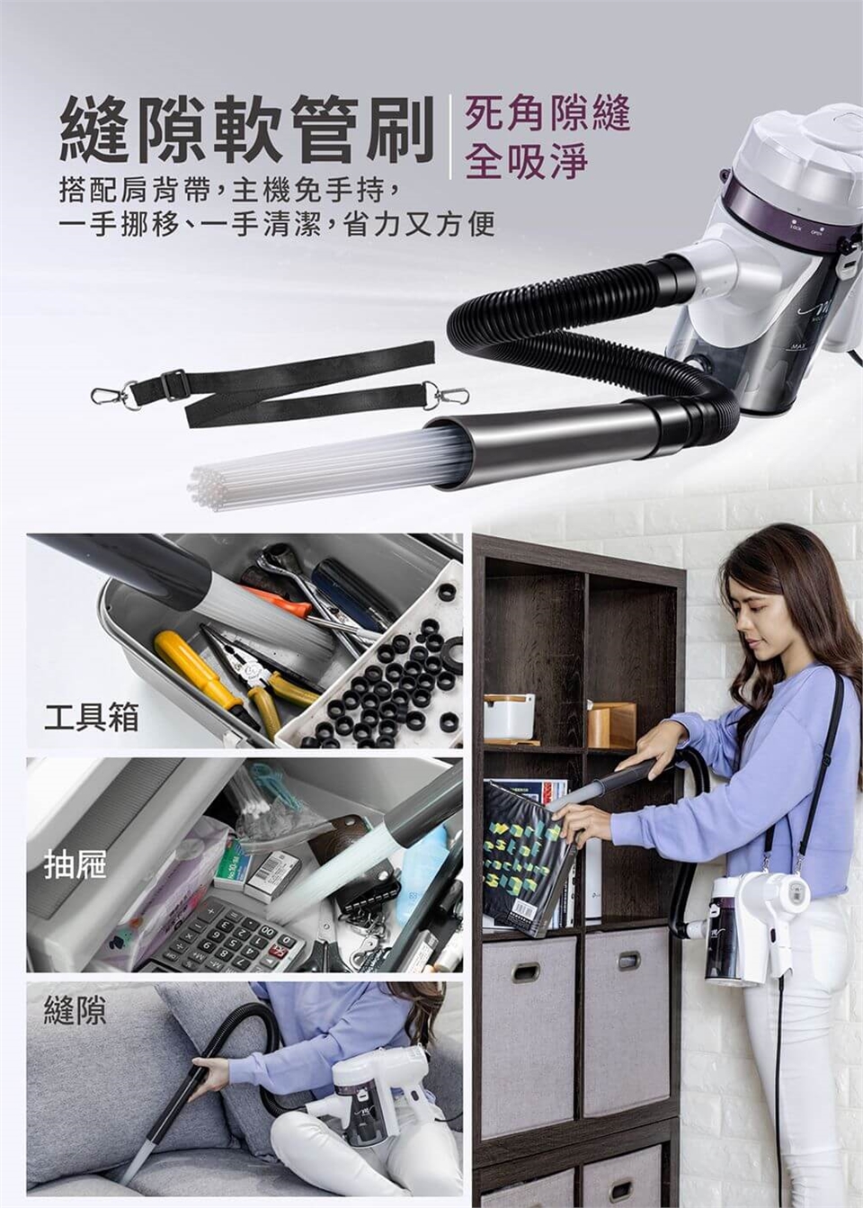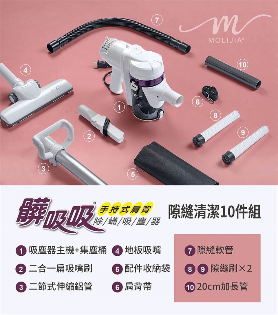 產品名稱:【MOLIJIA 魔力家】髒吸吸手持除螨有線吸塵器-隙縫軟管10件組-白色