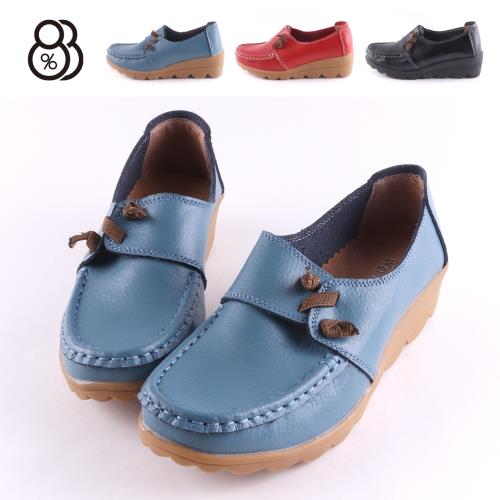 【88%】休閒鞋-真皮鞋面 跟高5cm 楔形純色休閒鞋 莫卡辛 懶人鞋