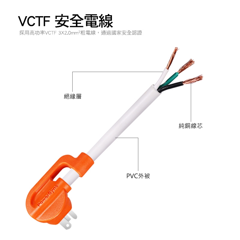 ‧ 線材採用VCTF 2.0mm² 粗電線