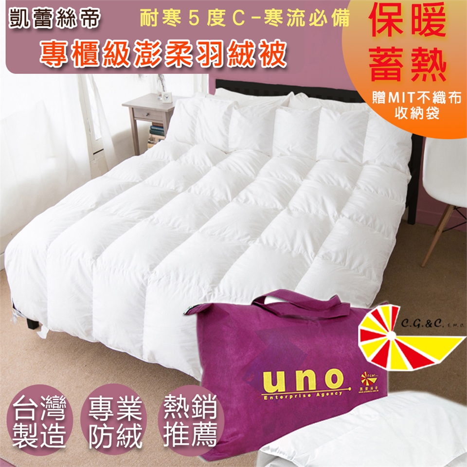 純天然的羽絨被,冬暖(具有調溫的效果)、夏天舒適(在冷氣房也可蓋),保證不會悶熱。但天冷一定保暖!