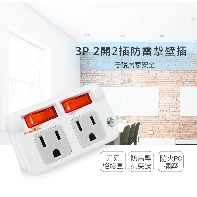 ● 品名:3P 2開2插防雷擊節能壁插 / 型號:TWT322SN