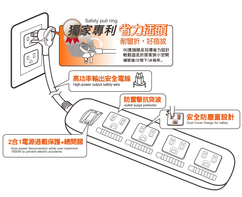 ‧ 新式安全拉環設計,避免觸電,更省力安全