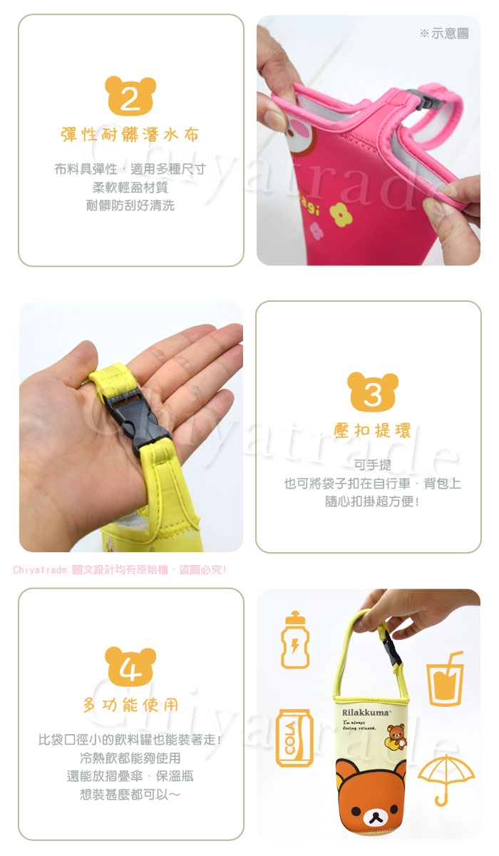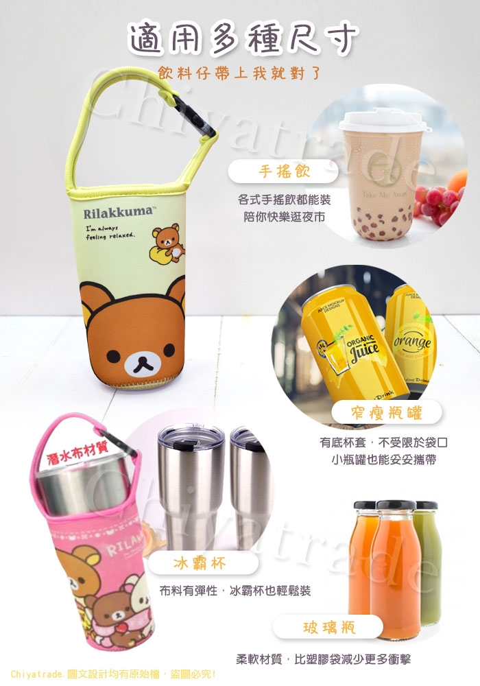 有底杯套,比袋口徑小的飲料罐也能裝著走!冷熱飲都能夠使用~