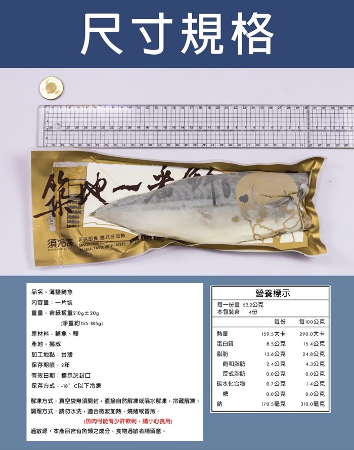 料理方式 : 簡單煎烤加熱即可食用,亦可加入各種食材製成精緻的鯖魚料理!