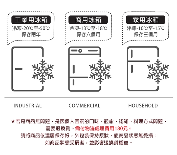 .退貨限制:本商品無提供體驗,食品一經開封不得退換貨,不接受7天鑑賞期退換貨,除非收到商品如有瑕疵或損毀請先第一時間冷凍保存後,並通知系統後台將於2~3天內完成退換貨作業。
