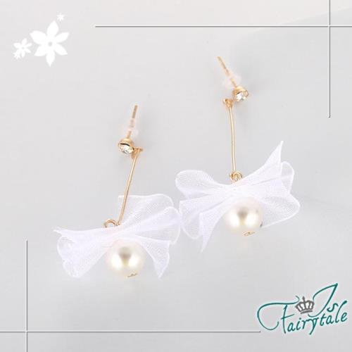 【伊飾童話】蕾絲緞帶*蝴蝶結珍珠垂墜耳環
