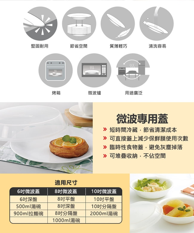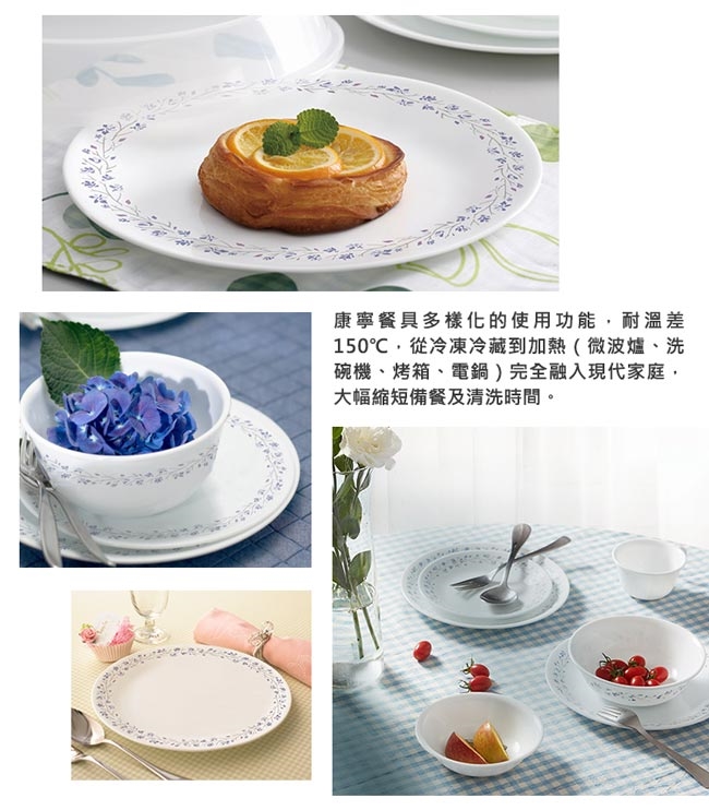 ●康寧餐具可以放入微波爐內加熱或烹調食物,也可放入預熱過的烤箱及對流式(旋風)烤箱內烘烤食物。
