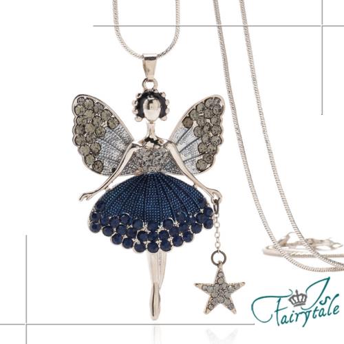 【伊飾童話】蝴蝶仙子*藍鑽花裙灰銀長鍊