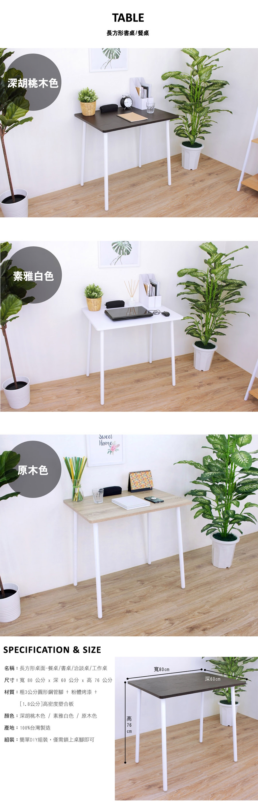 【頂堅】寬80x深60x高76/公分-中型書桌/餐桌/電腦桌/洽談桌/工作桌(三色可選)