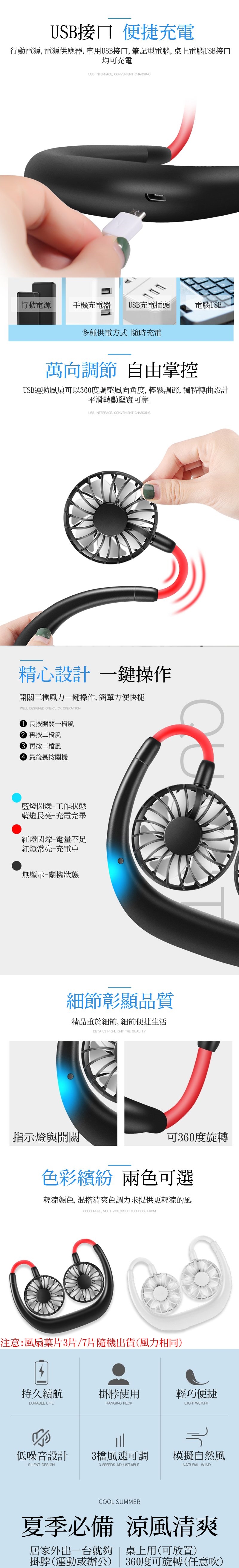 掛脖/桌立兩用USB充電運動風扇