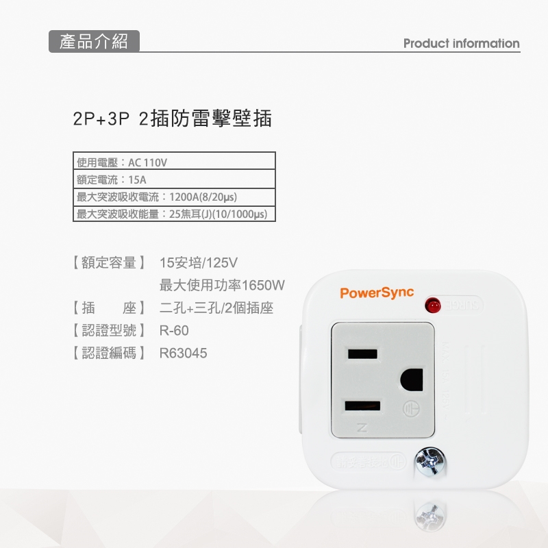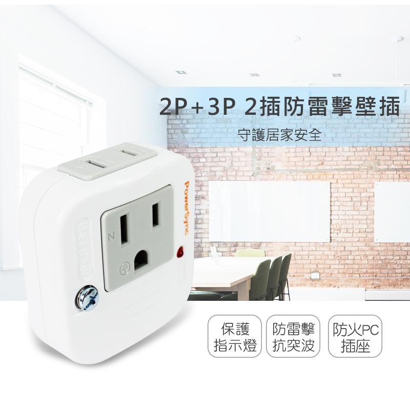 ● 品名:2P+3P 2插防雷擊壁插 / 型號:TWTMN2SN