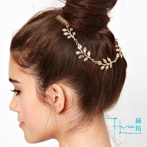 Hera 赫拉 女神風金葉子後掛式髮箍/髮帶