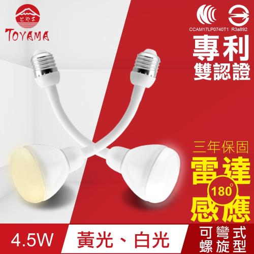 TOYAMA特亞馬 LED雷達感應燈4.5W E27彎管式螺旋型(白光、黃光任選)