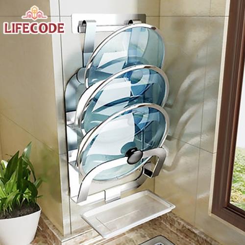 LIFECODE 《收納王》304不鏽鋼-免打孔-壁掛式-鍋蓋架/砧板架