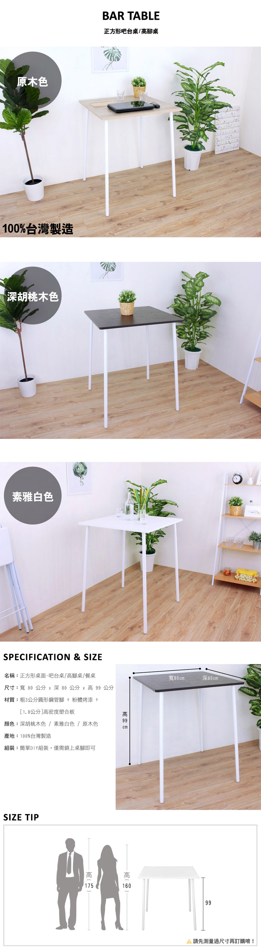 【頂堅】寬80x深80x高99/公分-方形吧台桌/高腳桌/餐桌/洽談桌(三色可選)