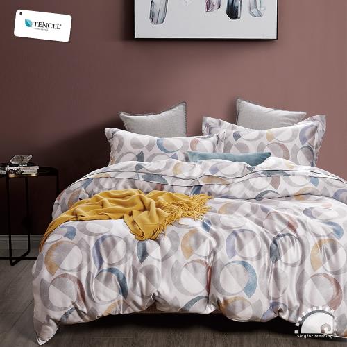 幸福晨光- 100%頂級天絲雙人加大四件式舖棉兩用被床包組- 心島兮微