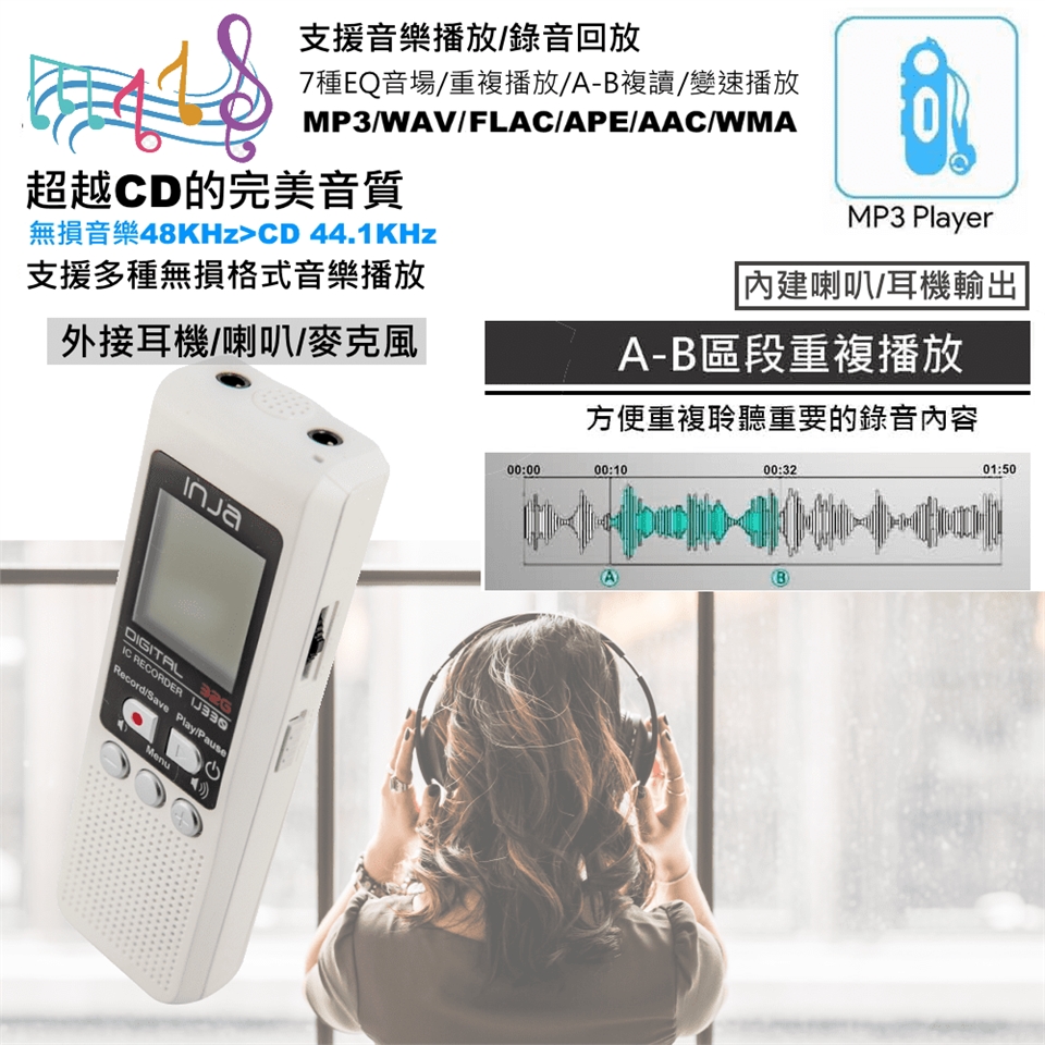 ●支援MP3音樂播放,播放速度調整