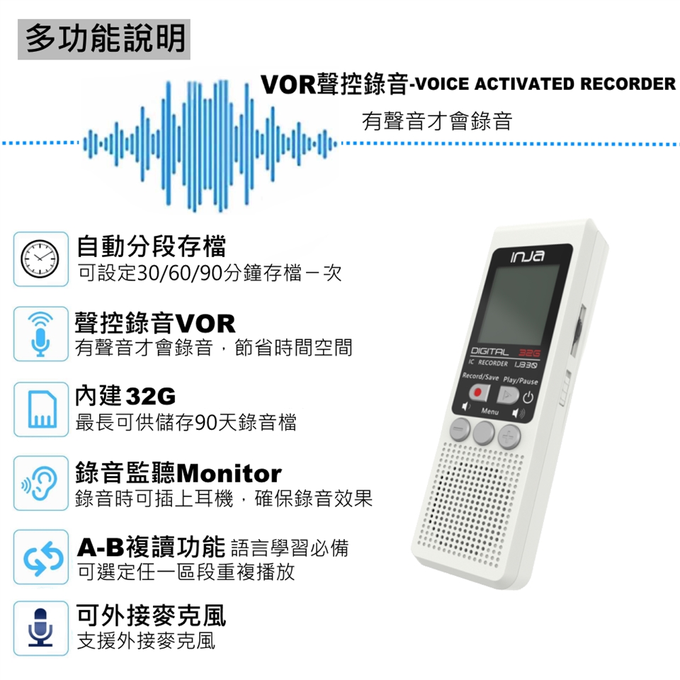 ◆ 支援VOR聲控錄音