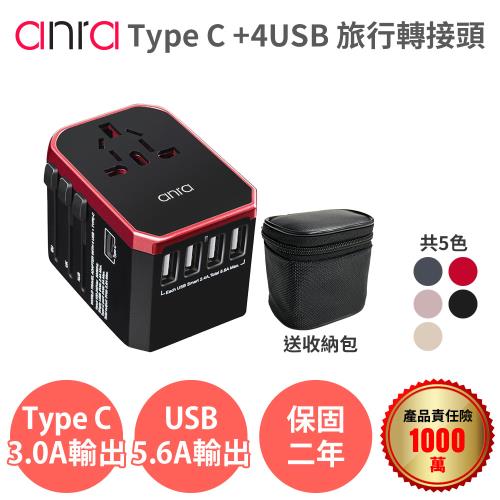 全球通用-Anra Z3 出國 旅行 萬用轉接頭/4USB+Type-C 8A保險絲 插座 各國轉接頭