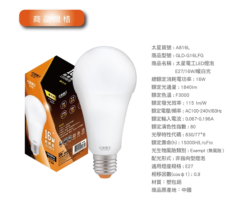 額定功率消耗:16W